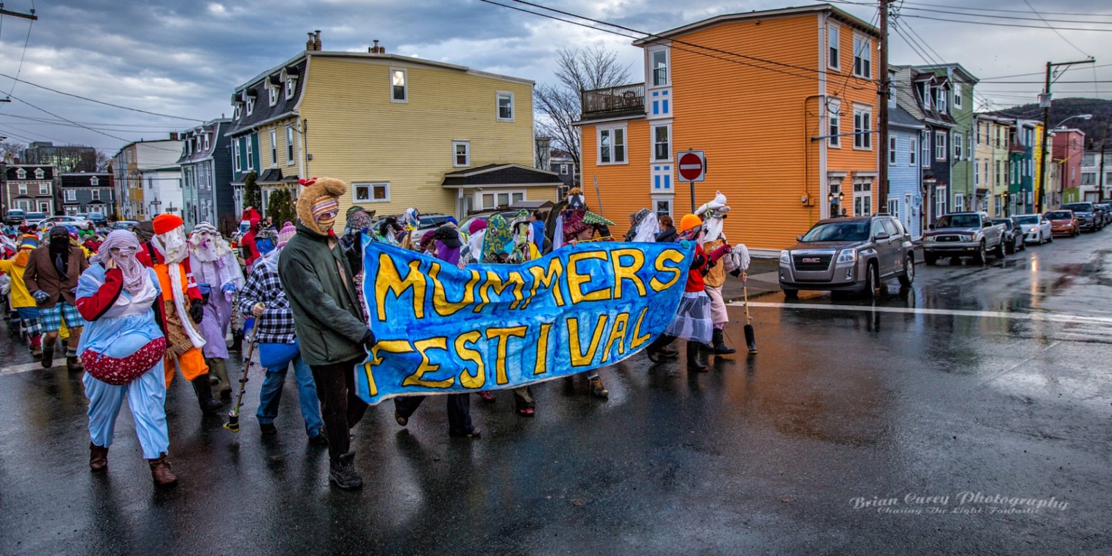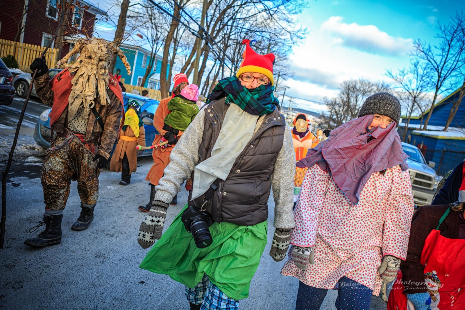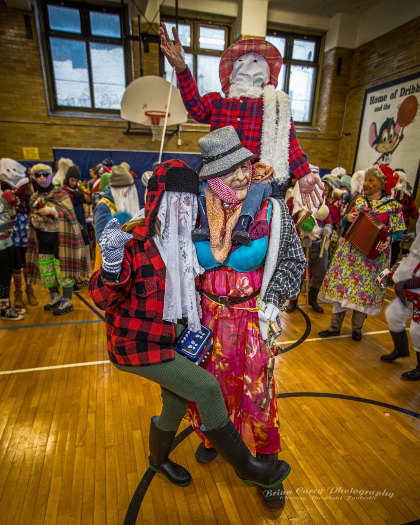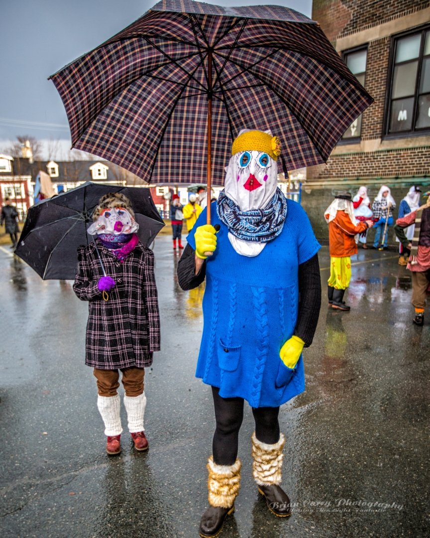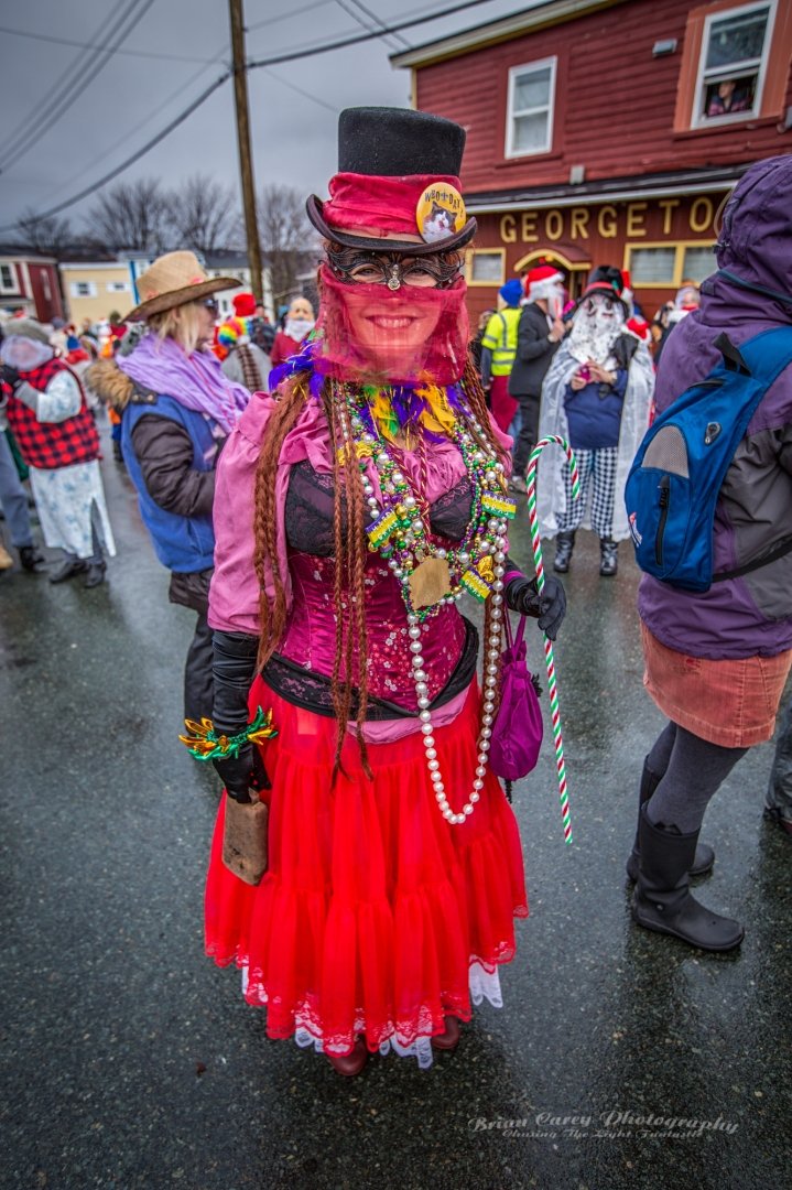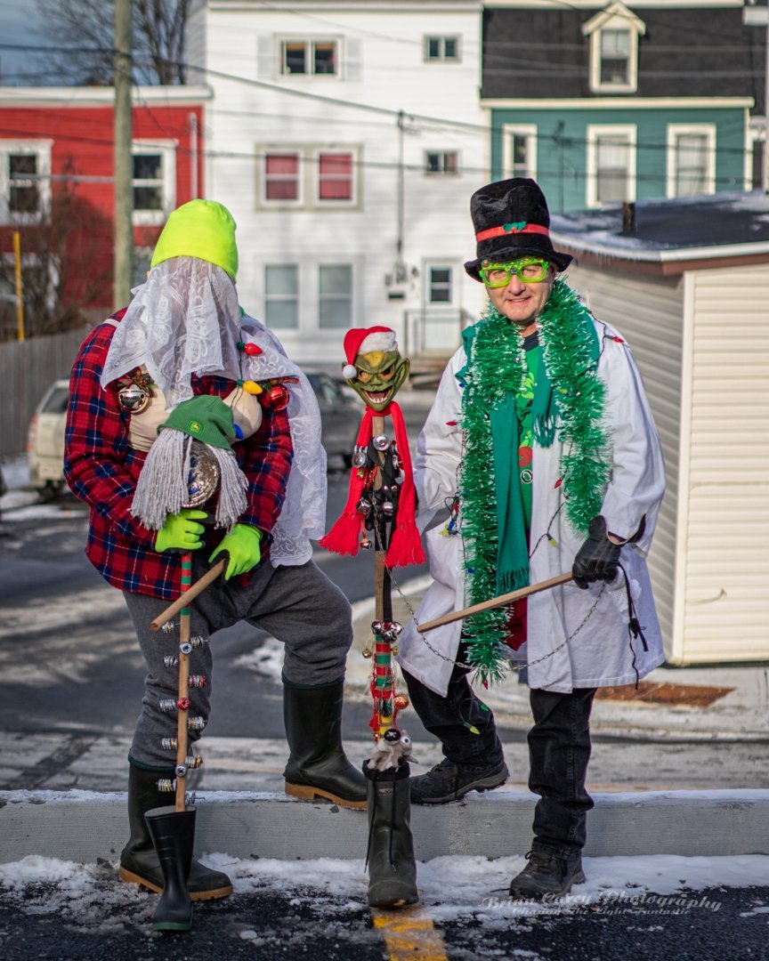 Mummering is a centuries-old Christmas tradition in Newfoundland. During the twelve days of Christmas, friends and neighbours disguise themselves, often using lace curtains, pillowcases, or old clothes, and visit homes in their communities. The disguised mummers dance, play music, and speak in funny voices while the hosts try to guess who they are. As with many of the outport communities where it was most popular, it is dying out, but has been somewhat revived in recent decades. Mummering remains a joyful symbol of Newfoundland’s community spirit, creativity, and sense of fun. The photos below are from events in St John’s.