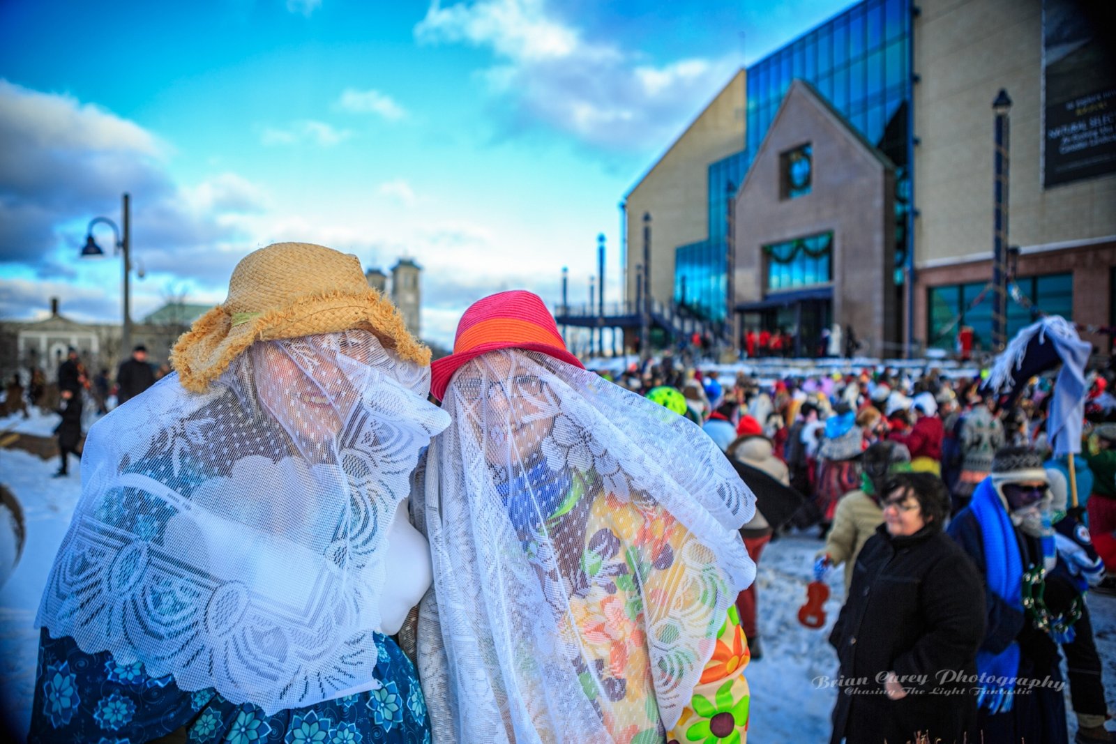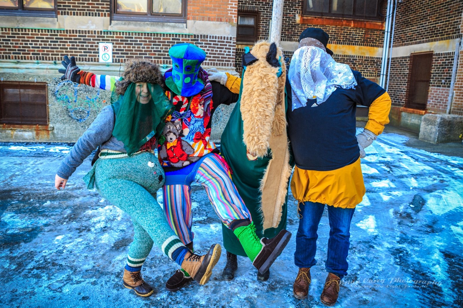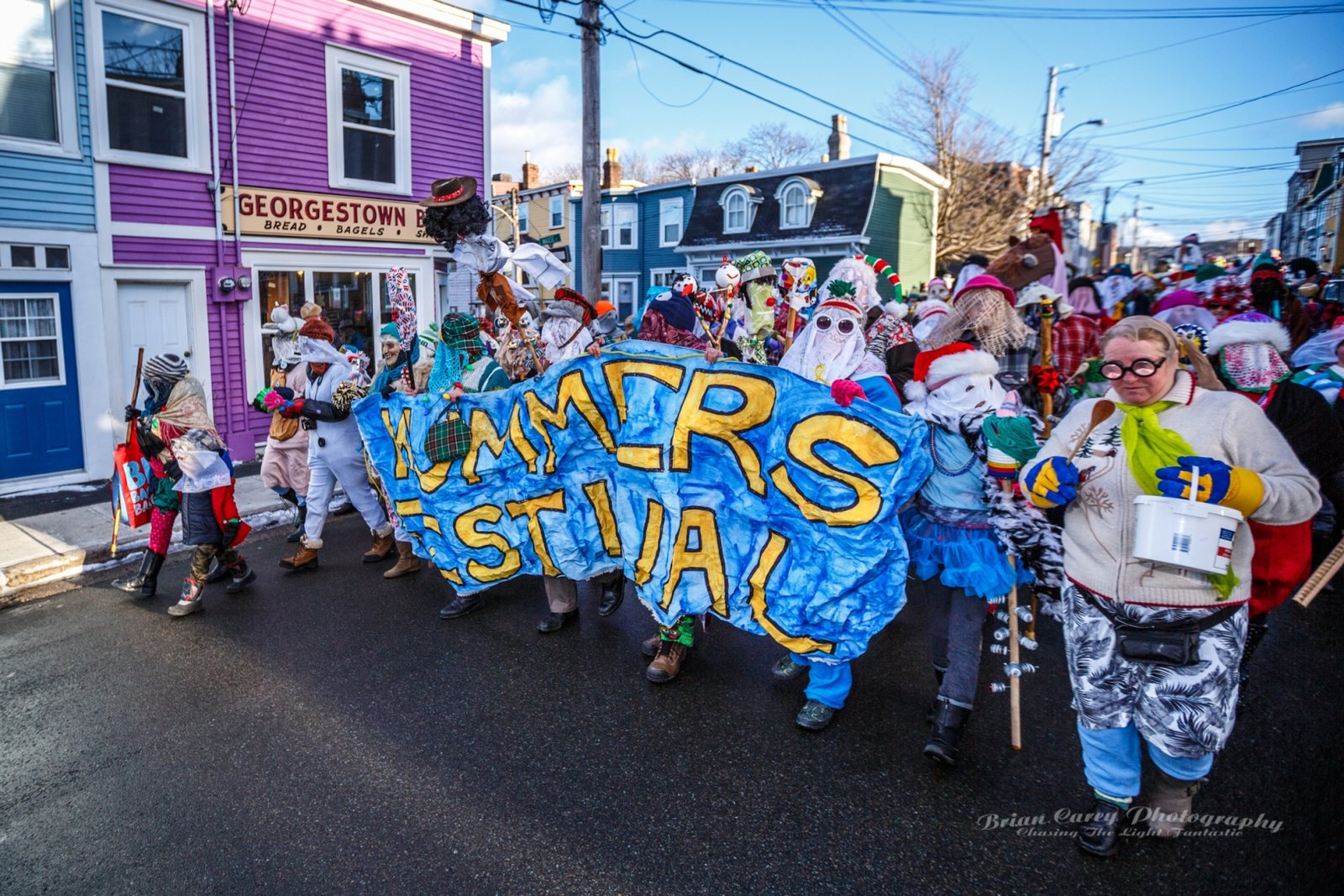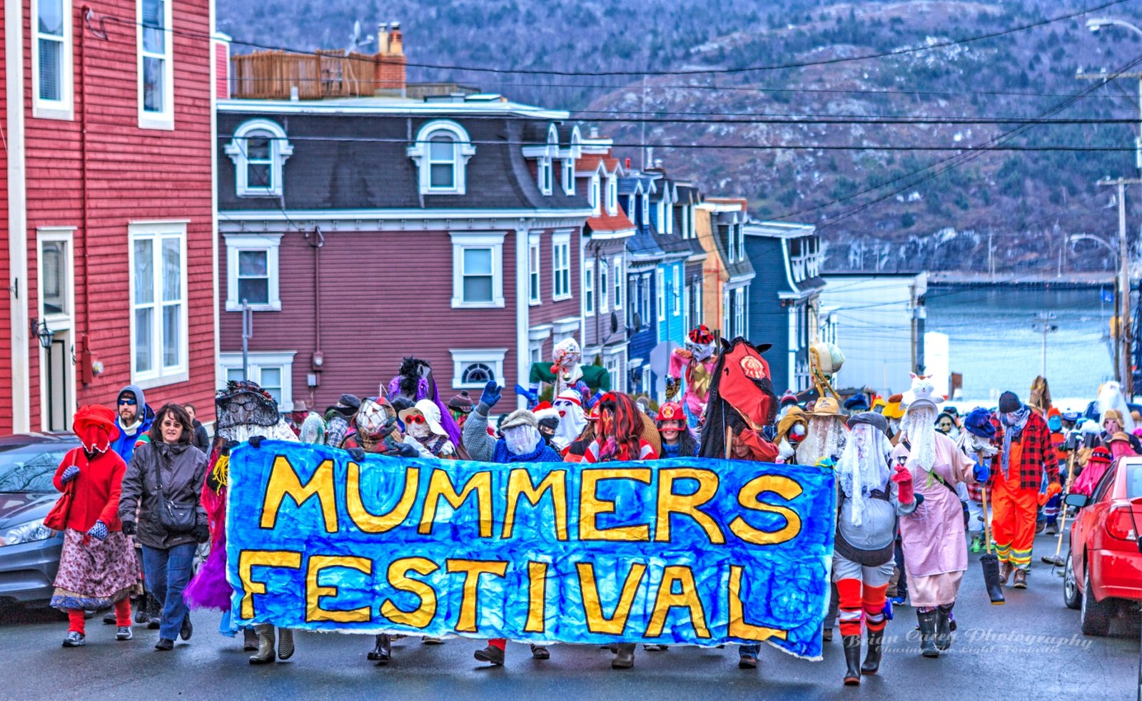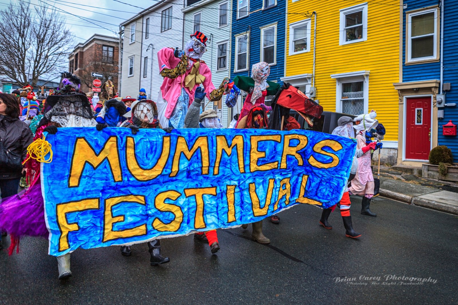 Mummering is a centuries-old Christmas tradition in Newfoundland. During the twelve days of Christmas, friends and neighbours disguise themselves, often using lace curtains, pillowcases, or old clothes, and visit homes in their communities. The disguised mummers dance, play music, and speak in funny voices while the hosts try to guess who they are. As with many of the outport communities where it was most popular, it is dying out, but has been somewhat revived in recent decades. Mummering remains a joyful symbol of Newfoundland’s community spirit, creativity, and sense of fun. The photos below are from events in St John’s.