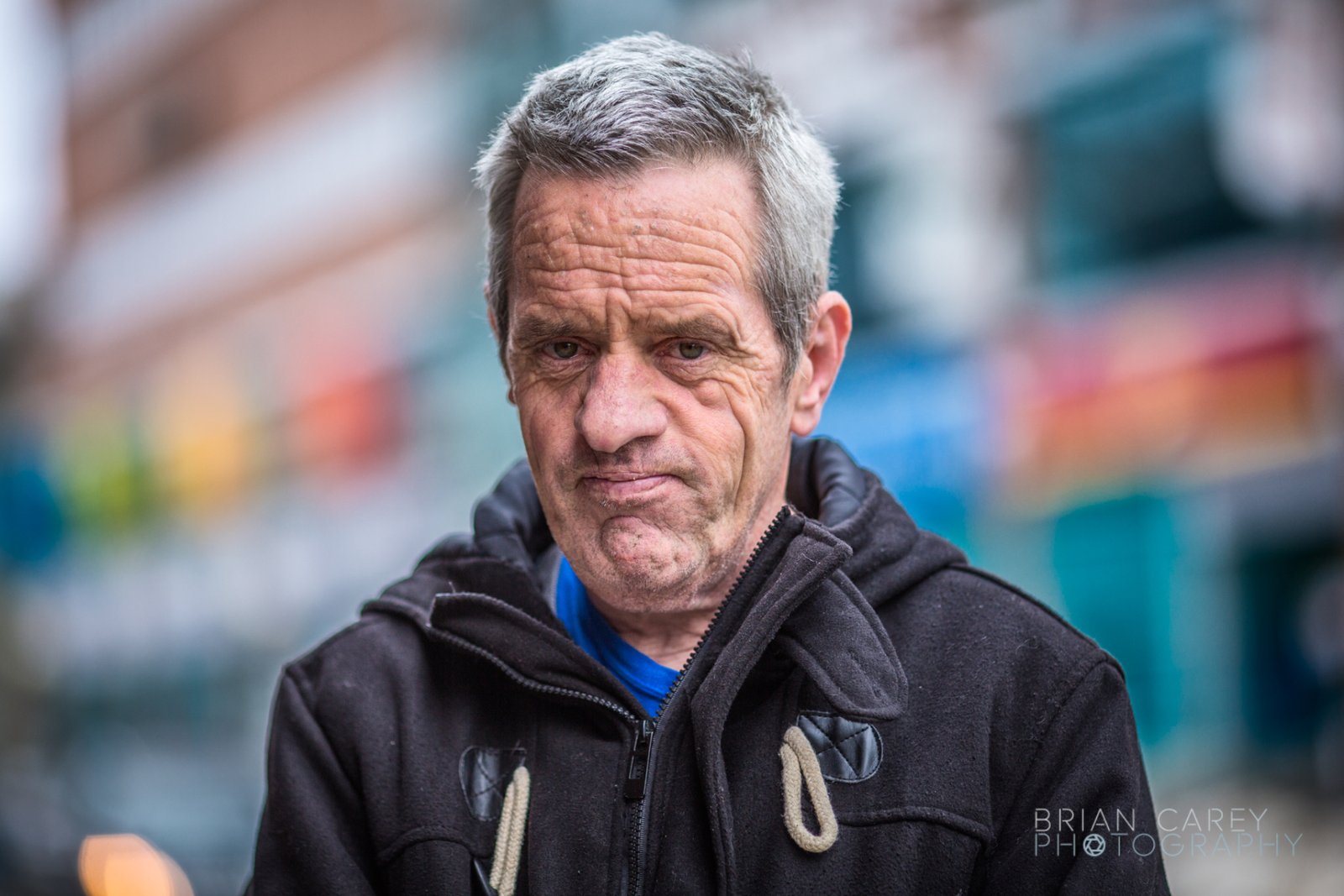 I’ve been working on my street photography since 2008 and one of my goals was to capture photos of some of the city’s well-known characters. I got the idea when a friend told me he had seen photographs of some of the street characters, from the 1970s and 1980s, on a wall at a local office. These included some of the people I remember growing up. “Bucky King”, “Nina Watts”, “Ruby Red Lips”, “Farmer”, “Angus the Shoe-Shine Man”, and a few others. I’m a “Corner Boy” and grew up on the streets of St. John’s; these were the characters of my childhood.