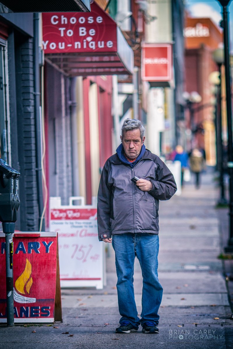 I’d seen Tommy around for years, though I don’t know if he had any idea who I was. We got off to a rocky start, which, looking back on it, isn’t surprising. After all, it’s not every day that a man you don’t know asks to take your portrait. I try to make sure people can see me with my camera and maybe have some idea what I’m doing. I’d like to add that I’ve photographed over 2,000 people, practicing my street photography, and the experience has been overwhelmingly positive. I do try to approach this work with tact and respect and I think that helps.